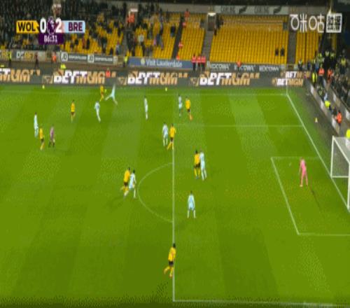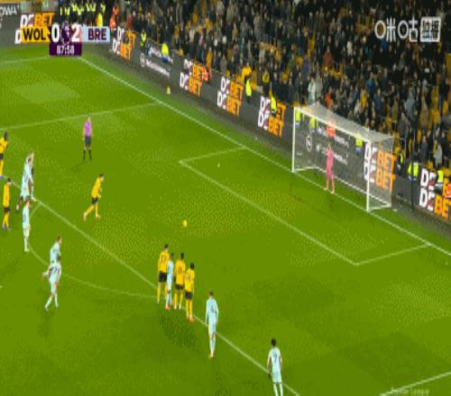 第62分钟,雅内尔特挑传,刘易斯-波特破门得分,布伦特福德1-0狼队