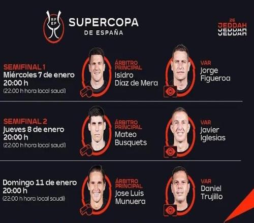 西超杯裁判:德梅拉执法巴萨vs毕包,布斯克茨执法马德里德比